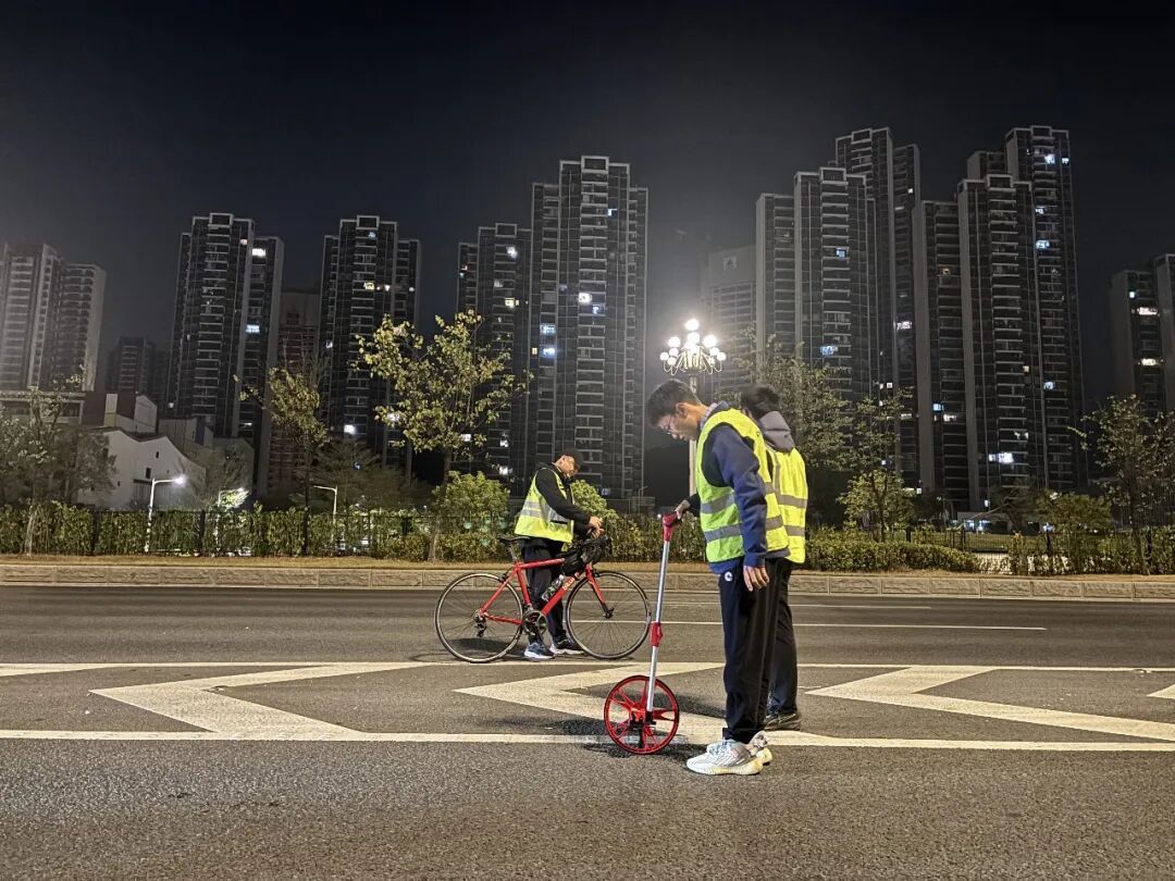 为保证赛道的准确性和严谨性,受中国田径协会委派,北京体育大学教授、国际A级丈量员闫俊涛教授带领工作人员,于深夜从绿轴广场(起点)出发,启用“琼斯计数器”等精密仪器开展2025黄埔马拉松赛道丈量工作;因深夜气温适宜可将误差压缩至0.1%以内(符合国际田联要求),丈量车队沿预定路线行进,工作人员高效完成点位喷漆标记、参照物记录等操作,经近7个小时的细致丈量与反复校对,圆满完成赛道精准测绘,为12月28日赛事公平顺利举办筑牢基础。