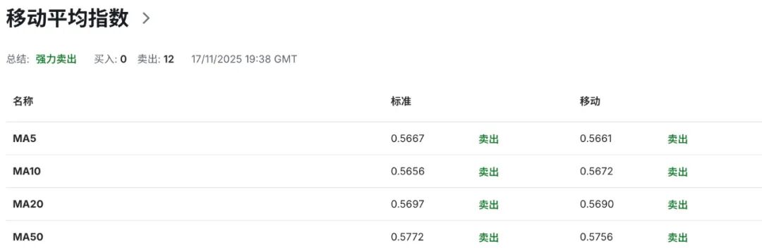 综合而言,新西兰联储调查显示第四季度新西兰的通胀预期依然低迷,巩固了新西兰联储将连续第三次降息的预期。与此同时,因新西兰联储在经济疲软背景下被迫采取激进降息措施,打击市场情绪,导致纽币周期框架结构上面临深层次压力风险。此外,新西兰第三季度失业率攀升至5.3%,创下自2016年第四季度以来的九年高点,反映就业市场增长乏力,经济疲软抑制企业用工需求。今年以来,新西兰经济持续低迷,上半年未能实现增长。尽管下半年有望温和复苏,但移民放缓与房地产市场低迷仍构成制约。零售支出和通胀预期等数据尚未明确转好,因此市场对官方现金利率的定价略有下调,进而对纽币形成压力,并导致纽币即将成为2025年首个抹去年初涨幅的主要发达市场货币。相比而言,当前投资者对美联储12月货币政策的谨慎预期,以及市场对降息节奏放缓的重新定价触发美元指数“再定价—追价—止损”的链式反应,为美元指数构成心理以及政策性支撑。美联储主席鲍威尔在10月货币政策会议后明确表示,12月是否继续降息“尚未确定”,并强调在官方数据恢复发布前,决策者将采取“观望态度”。这一表态有效抑制了市场对进一步宽松的押注,推动美元在多币种篮子中持续走强。与此同时,美联储声明显示对于美国通胀粘性与劳动力市场降温的双重风险权衡仍存分歧,从而导致决策层结构性内部分化愈发明显,阻碍美联储货币宽松政策预期的基调引发纽币盘口反馈体现为:RSI指数自30以下超卖区间回调修复提示短线技术性反弹条件以及“超卖-均值回归”情绪正在积累,但尝试行上行动力扩张遭遇显著阻力压制,反弹持续性偏弱,量价关系偏向“量能前导型”下跌,即缩量反弹而放量下行的风险倾向仍维系高位水平。因此,近期纽币下行趋势延续反映防御性仓位再平衡影子再度显现,而优势仍然明显偏向于空头一侧。如若眼下0.5600区域防线未能提供有效技术性支撑,则短期技术性反弹需求将迎来负面信号,并提示需防范空头集中抛售边际效应扩张,从而导致汇价面临进一步下行测试0.5520目标区域的风险加剧。而本周整体价格走势的近端结构性阻力位于0.5700一线区域,纽币需在成功站稳至该区域上方后,才有望打破短期下行格局,并触发真实技术性反弹概率,从而激发市场多头复苏动力,为汇价通往回归10月高位平台0.5800目标区域打开新的上行空间。
